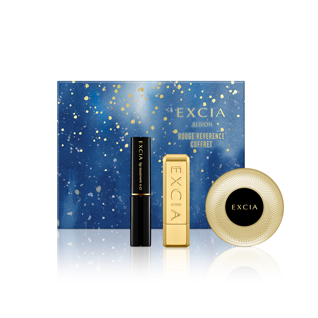 新発売の品格ひきたつルージュの限定色と、リップトリートメント、フェイスパウダーがセットになった聖なる季節の特別なコフレ。